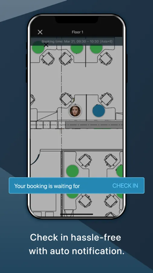 • Desk Height Controlling: Control the desk via Bluetooth after checking in a desk.