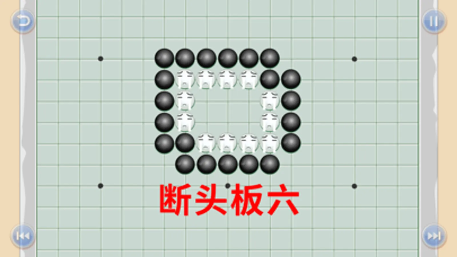 白棋被黑棋团团包围,中间围住的空像块木板,有六个交叉点,所以又叫“板六”。板六的棋一般是杀不死的。但如果白棋被黑棋给断开了,形成“断头板六”,则死是活就不好说了。这和白棋的外气多少有关。像刚才的断头板六,如果外面还有外气,则不一定是死棋了。如果没有外气,则必死!