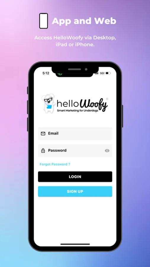 You may use your account credentials on our web platform as well as well when accessing please visit HelloWoofy.com for your convenience.