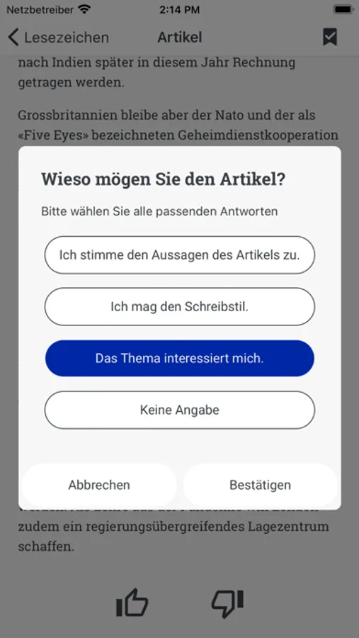 Informfully is an app to examine reading behavior against the background of political orientation. The app serves as an aggregator of selected print media and is used in the context of scientific experiments. The aim is to research the effects of recommendation systems on consumer behavior.