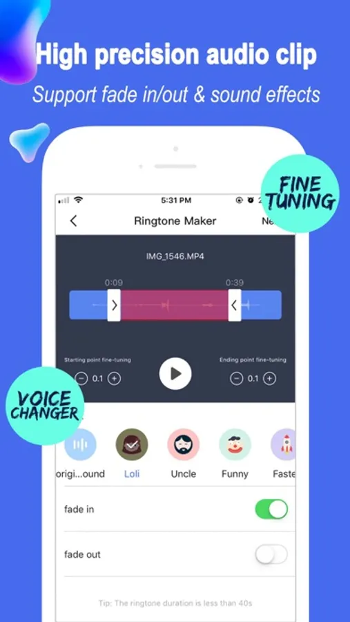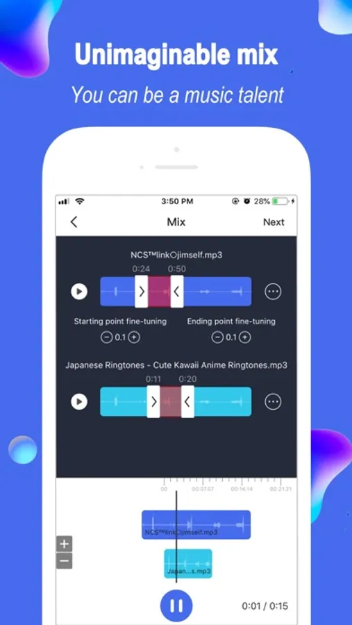 Audio Editor & Music Maker is an easy to operate music trimming and mixing tool that allows you to easily cut and create music and make ringtones for iphone. It is a professional audio and music editor. Whethever you are a professional musician or music amateur, you can play easily.