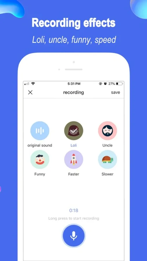 6.Recorder and voice changer: recorded audios can be edited directly, and added voice effects