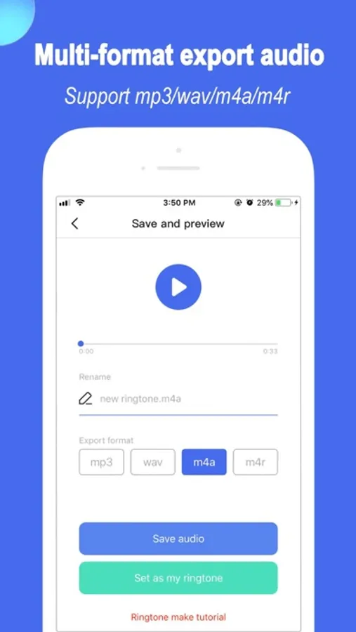 3.Audio editor: supporting music clips, mergers, mixing and other advanced features, and export your music files in mp3, wav, m4a, m4r and other formats;