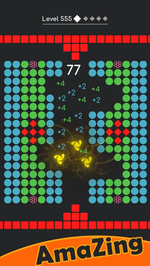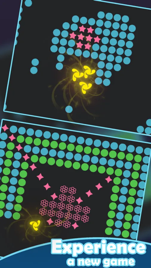 Drag your finger to guide a group of balls to break the green and blue balls and avoid the pink balls and stay away the red balls.