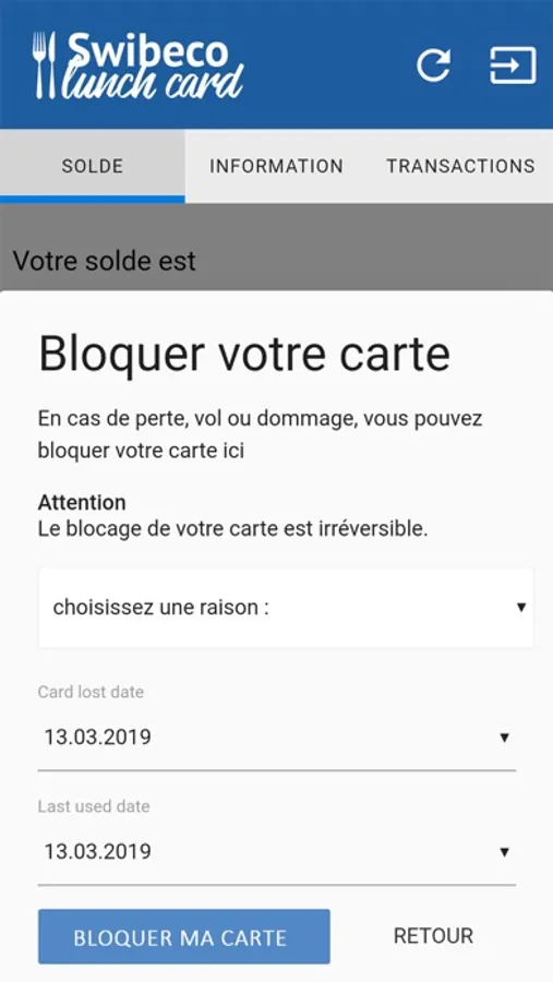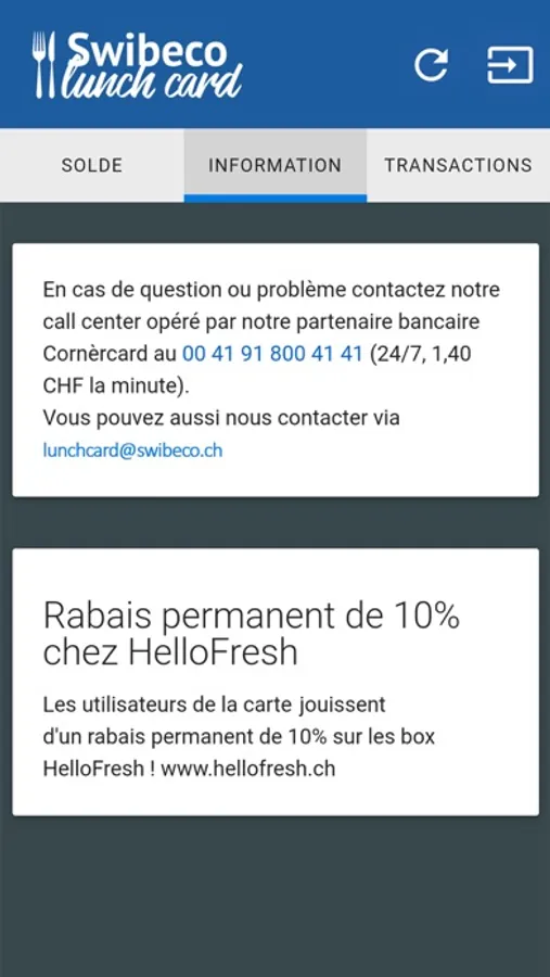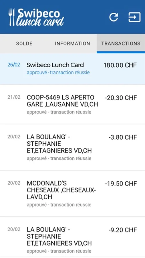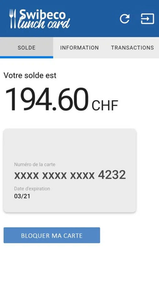A modern app. to consult your Swibeco Lunch Card balance any time.