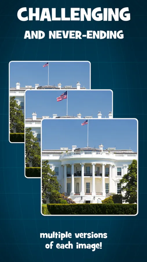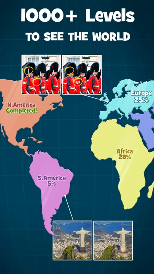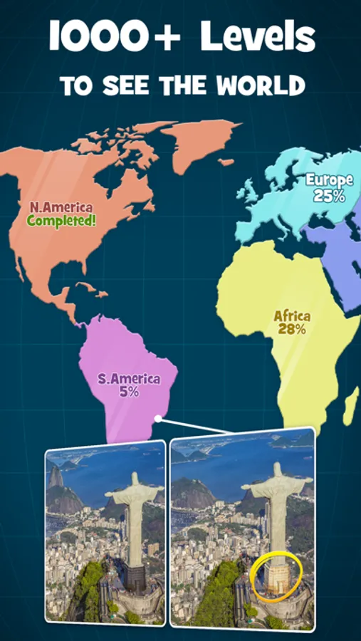 Navigate the globe, solving beautiful HD What’s The Difference puzzles as you go.
