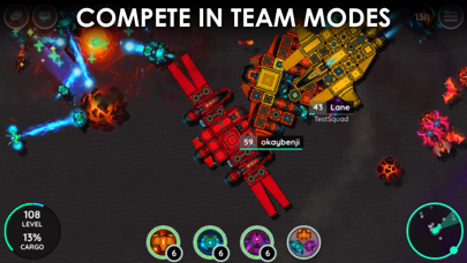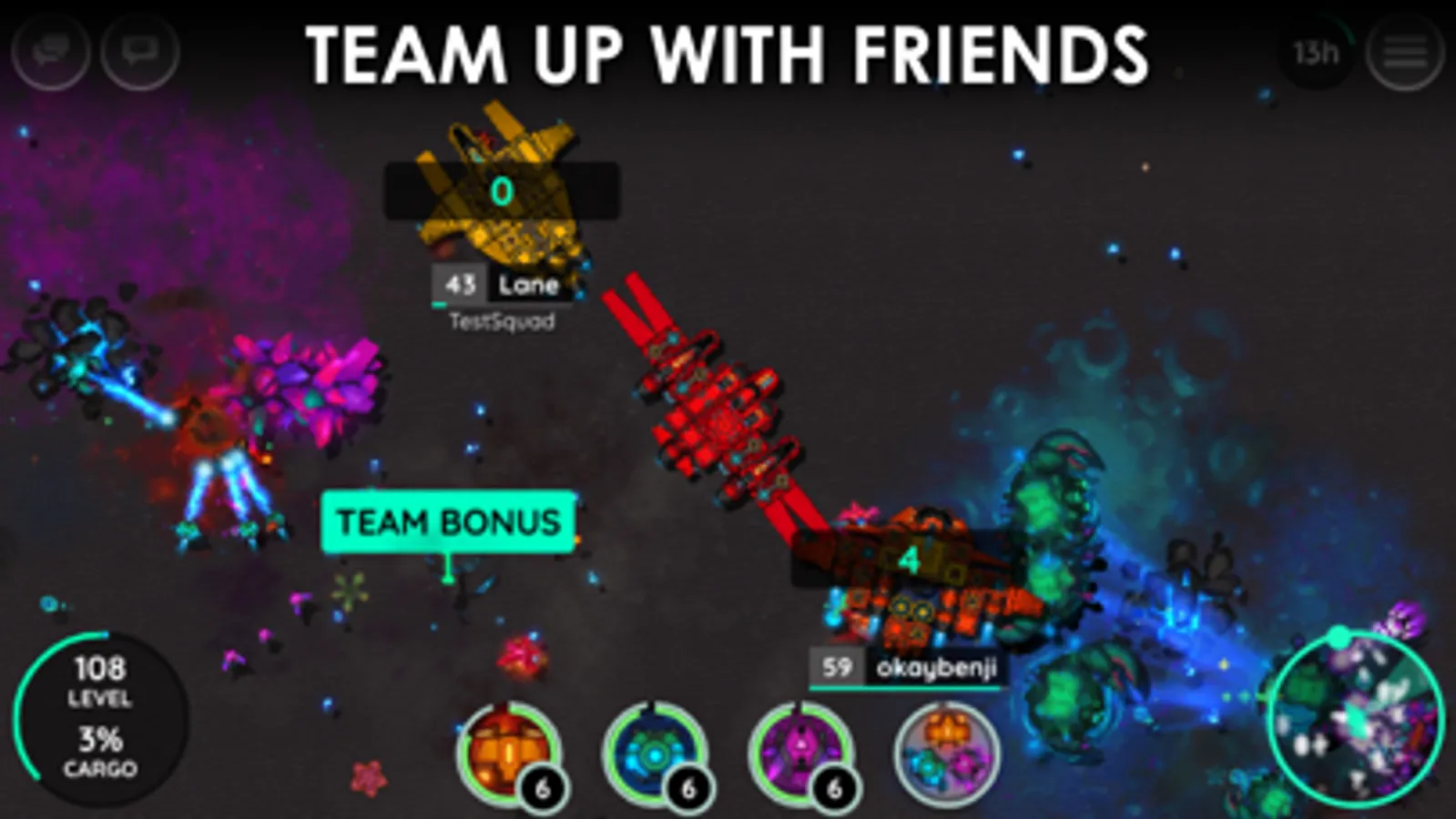It’s dangerous to go alone into the vast desert. Dangers are at every turn, so team up with friends to take on the most dangerous and valuable of guarded mines, bosses and more. Or, enter your best spaceships in the competitive Team Race mode where you and others compete for the most resources in an exciting race against time.