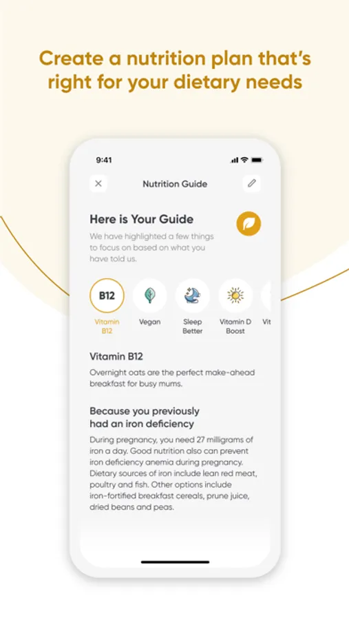 If you choose to sync with the Apple Health App, Biamother will enhance your recommendations based on your fitness and nutrition data.