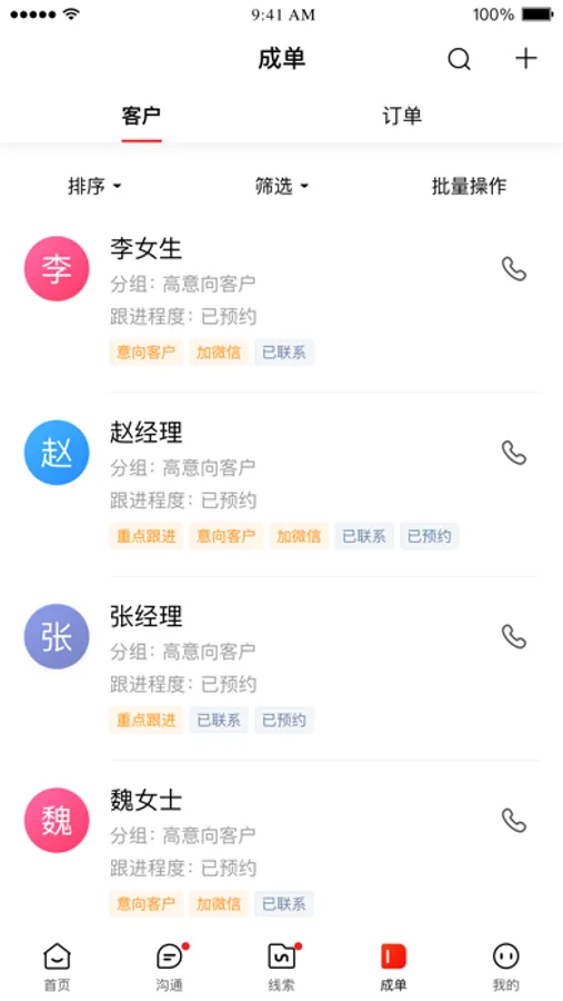 线索自动灵活分配,多视角呈现跟进记录;智能提醒销售跟进,中间号提升接通率,轻松提升业绩