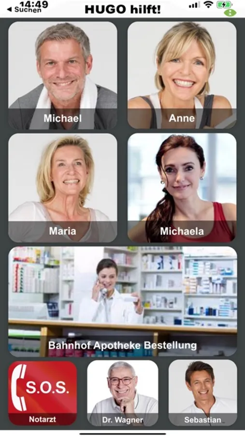 Damit hast du in einer App auf Fingerdruck alle wichtigen Personen oder Kontakt aufzurufen. HUGO hilft! im Alltag: Er wurde unter anderem für Senioren entwickelt, um auf Knopfdruck wichtige Personen anzurufen oder auch einfach nur wichtige Medikamente aus der Lieblingsapotheke. Durch die großen Kacheln ist es möglich auch für Menschen mit Sehschwäche einfach und sicher Kontakt aufzunehmen.