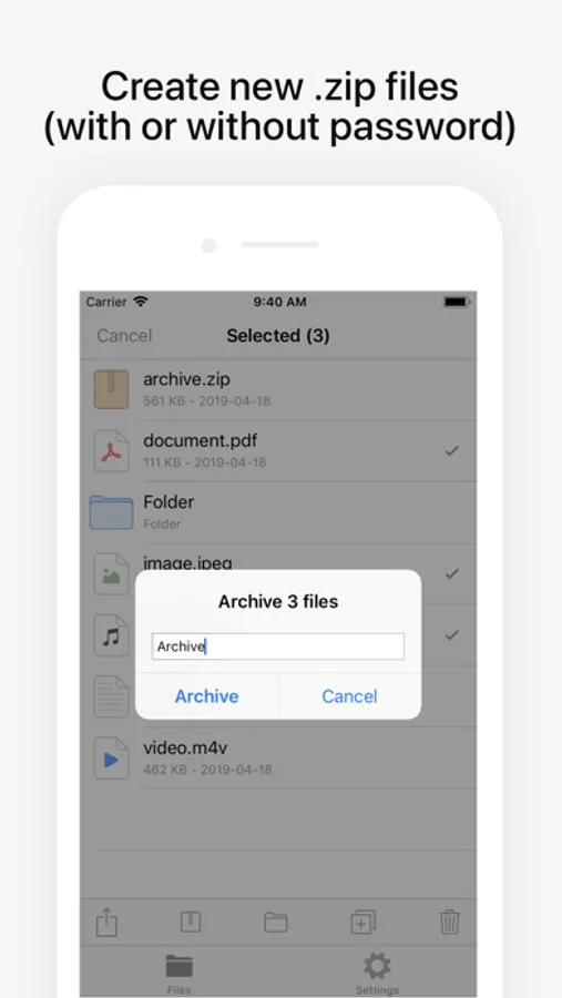 We are continuously working to add new functionality to the app. At the moment, Zip & Rar offers the following features.