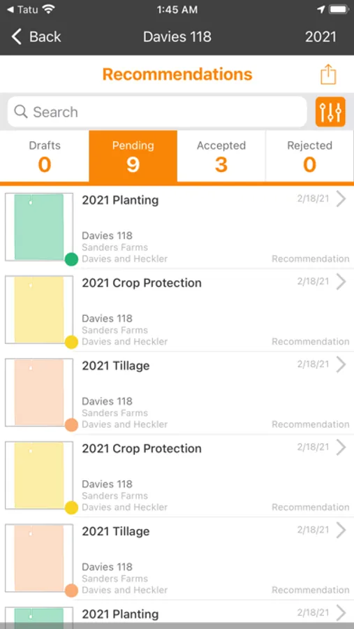 * Crie e compartilhe recomendações direto do campo