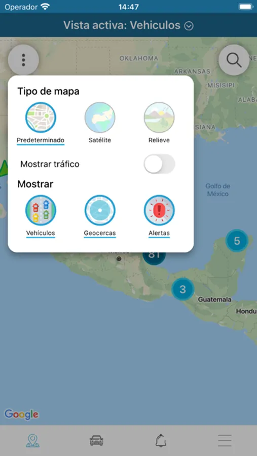 La app móvil te permitirá revisar tus unidades, ejecutar comandos, ver tus geocercas y alertas. Para ingresar es necesario utilizar el mismo usuario y contraseña de la plataforma web y seleccionar tu plataforma.