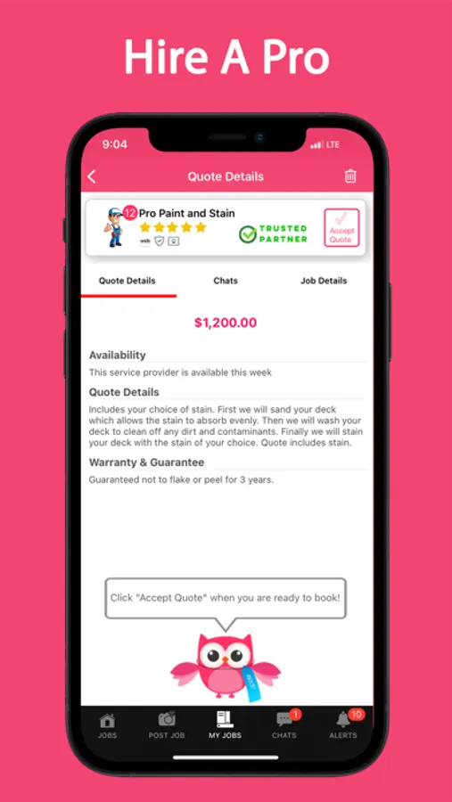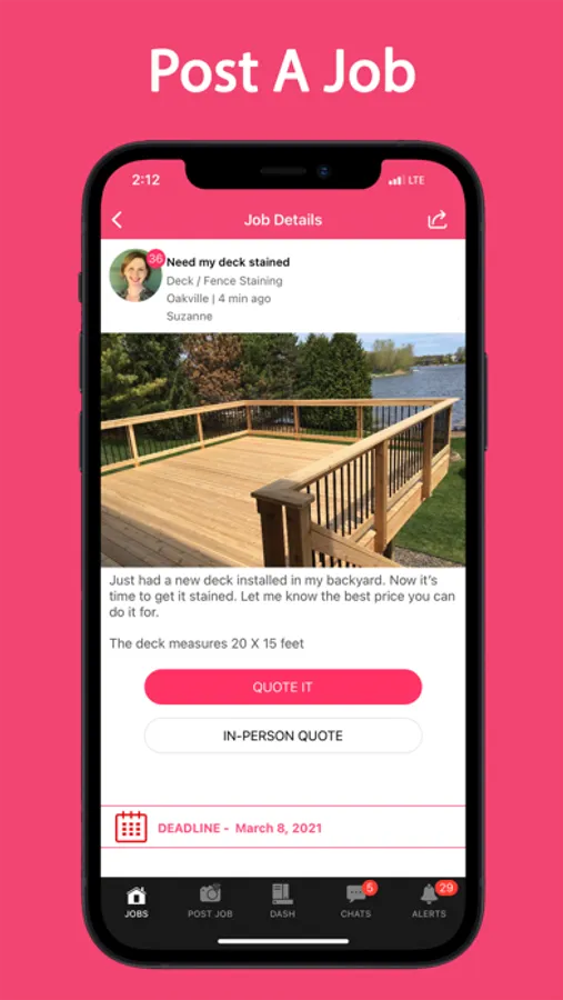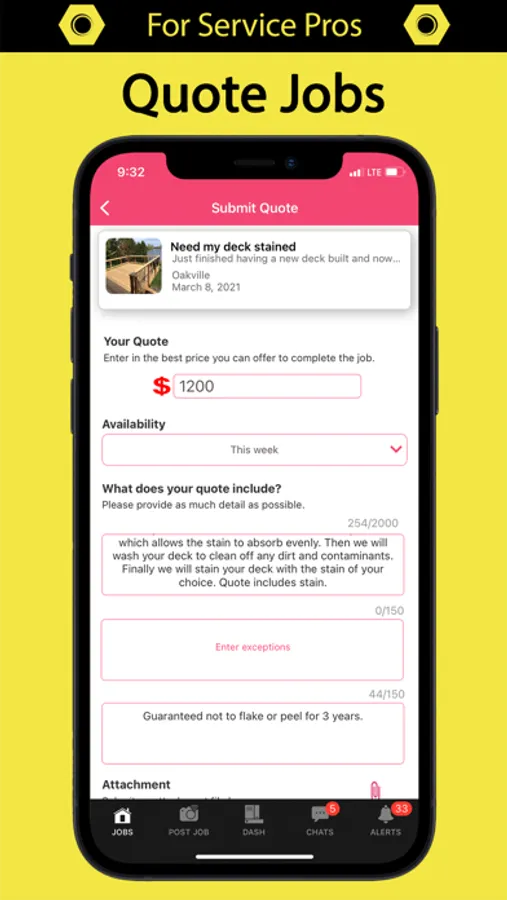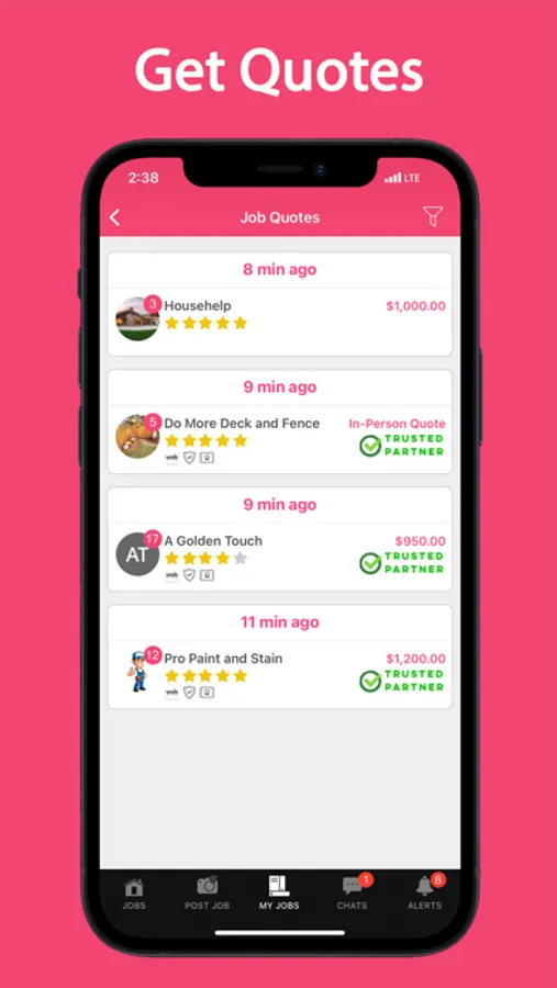 For small business, trades and service pros, we at Quote It help homeowners find local businesses like yours. Get instantly notified when a new job in your area is posted. Browse through job posts and quote on the jobs you want to do. Getting new clients just got easier with Quote It. The app for service pros is free to download.