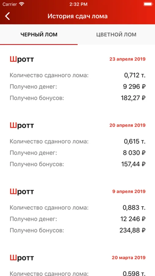 Ломосдатчикам доступен личный кабинет с полной историей сдач металлолома, отчетом за текущий и прошлые года, бонусным балансом. Для входа в личный кабинет используется номер бонусной карты компании Шротт, выданной при сдаче лома в одном из подразделений компании.