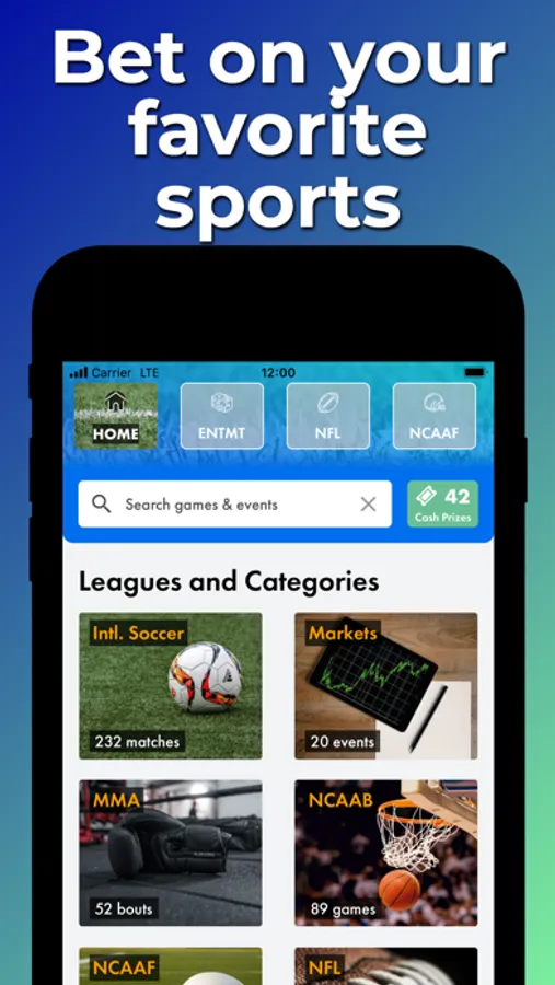 - Browse odds across over 40 leagues/categories and tap on your bet!