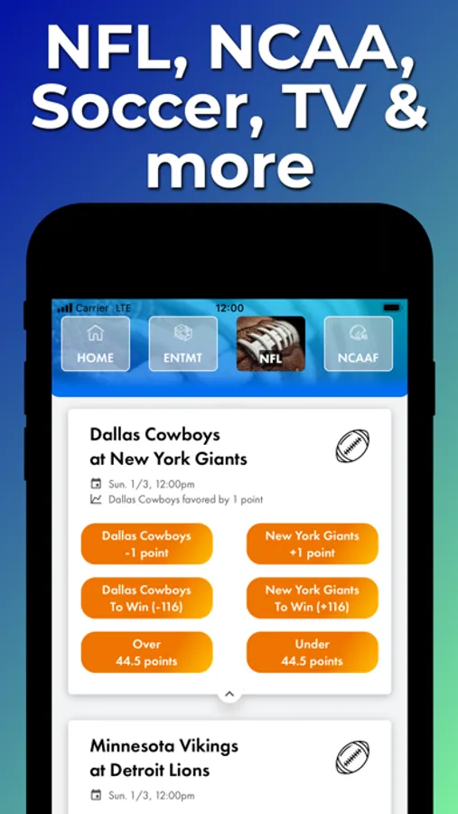 Pick the spread line, over-under, moneyline, or a prop bet.