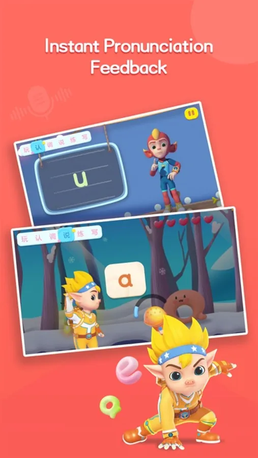 Our self-developed voice evaluation technology helps children effectively learn correct pronunciation. Through a variety of fun situations, children can receive instant pronunciation feedback.