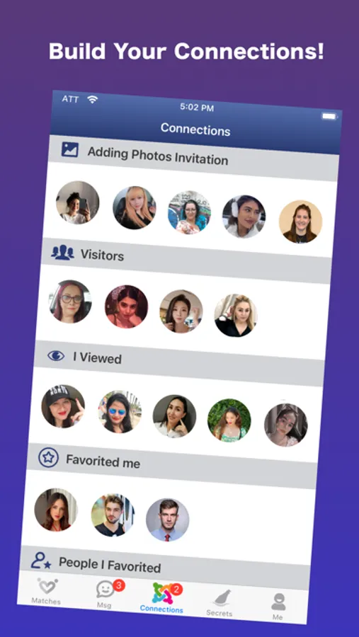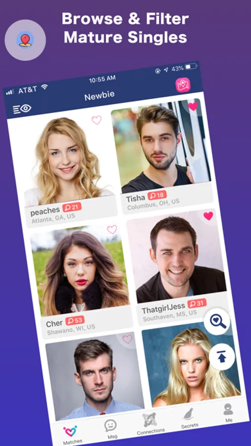 - Matches: Browse profiles by default criteria: Newest, Local and Active. Filter matches by certain criteria. For example: Age, distance, height etc.