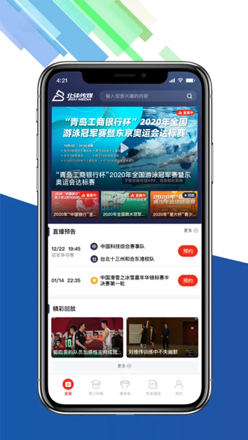 北体传媒是北京体育大学按照国家体育总局要求创办的开放性体育新媒体平台,App以“直播+教学”为切入点,通过直播吸引用户,凭借优质教学内容留住用户,两者的结合既是对体教融合的践行,也是一种全新的探索!