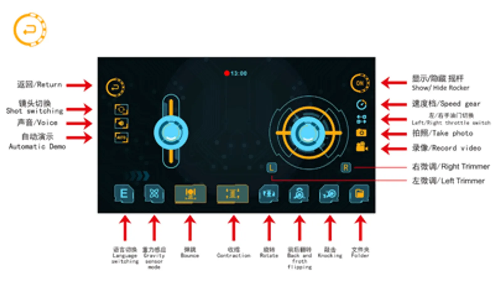 A remote control toy car transmitted through WiFi real-time video can control the toy car to take pictures, record video, forward and backward, steering, bouncing and other functions.