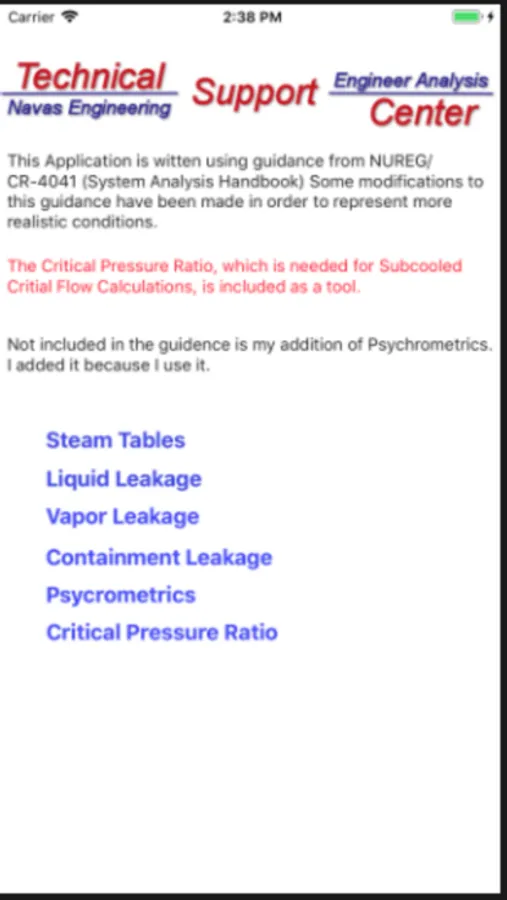 NUREG/CR-4041 was written by Idaho National Engineering Laboratory for the NRC in December 1984. As you already know, there were no Smart phones or Tablets in 1984. This App will allow an engineer in the Technical Support Center at a Nuclear Power Plant to perform calculations as described in NUREG/CR-4041 in an emergency event, regardless of the availability of electrical power, internet connectivity or lack of an IT infrastructure.