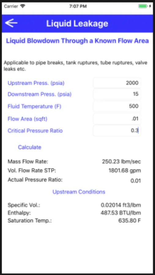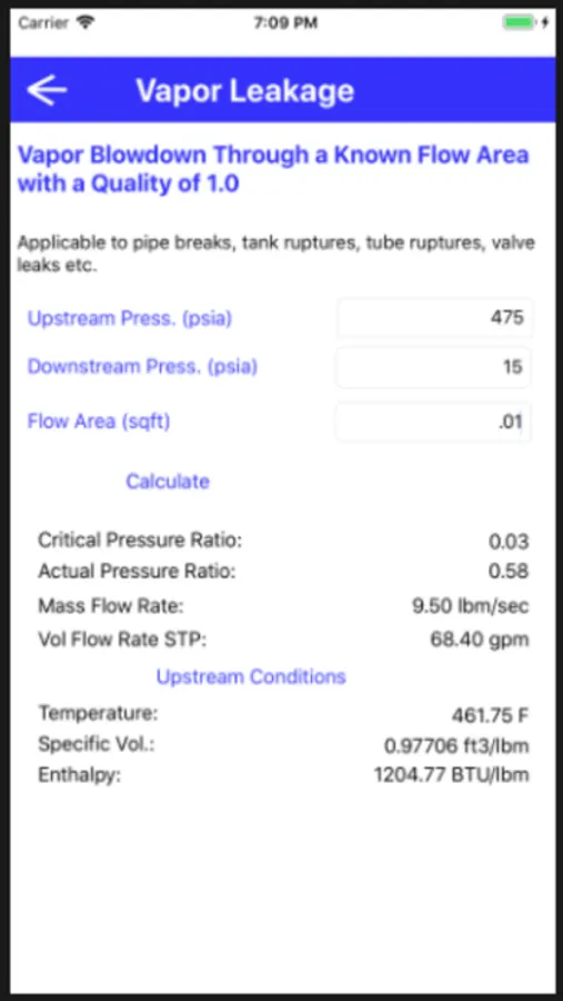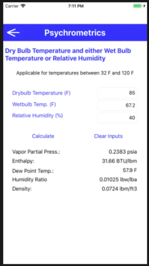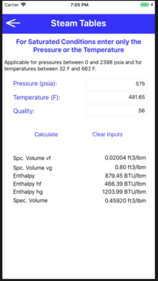 The application includes Steam Tables as well as the ability to perform Psychrometric calculations