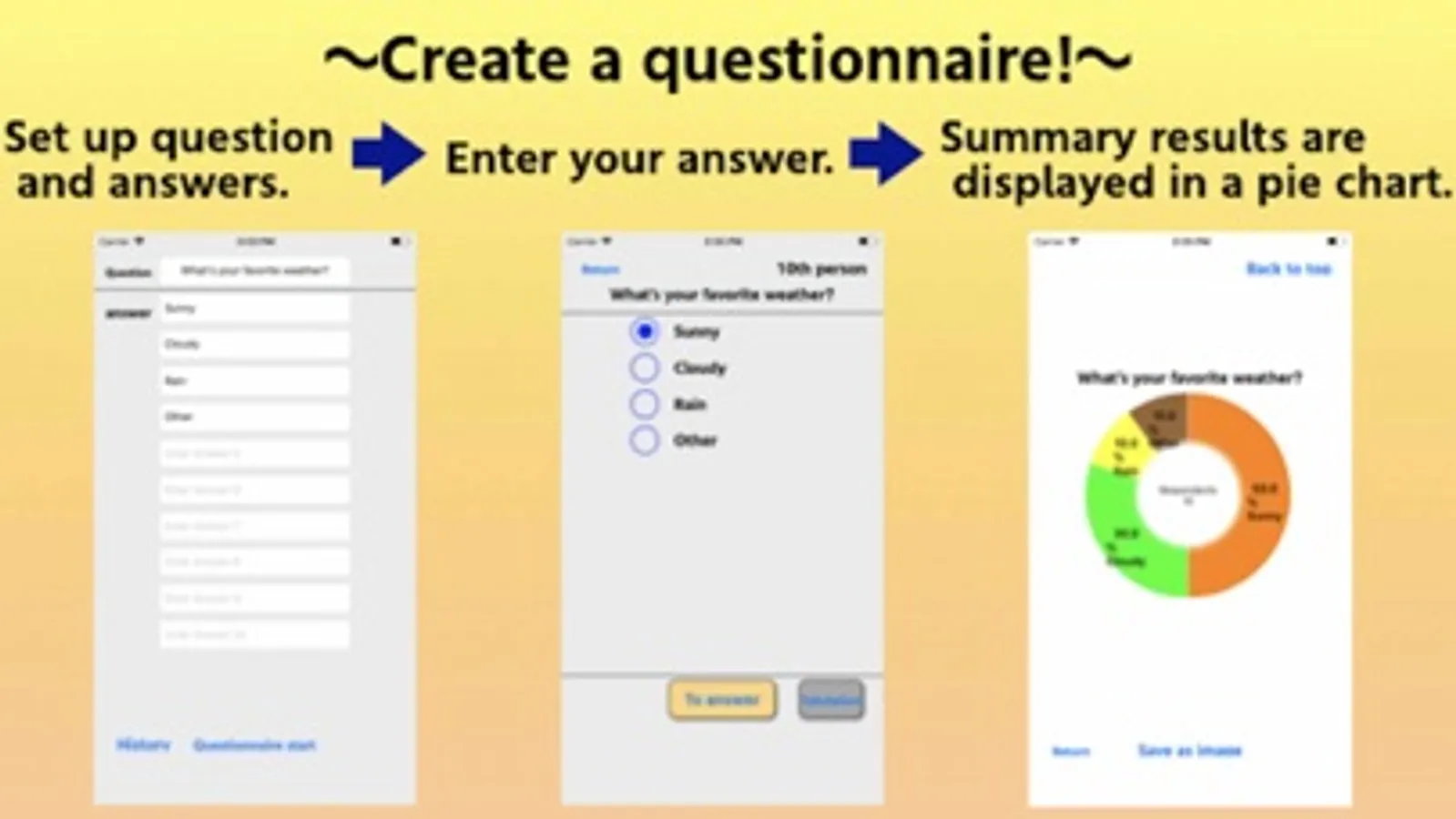 (3) After repeating (2) until a sufficient answer is obtained, tap "Tabulation" to display the result as a pie chart. Tap the bottom button to save the resulting graph as an image in the album.