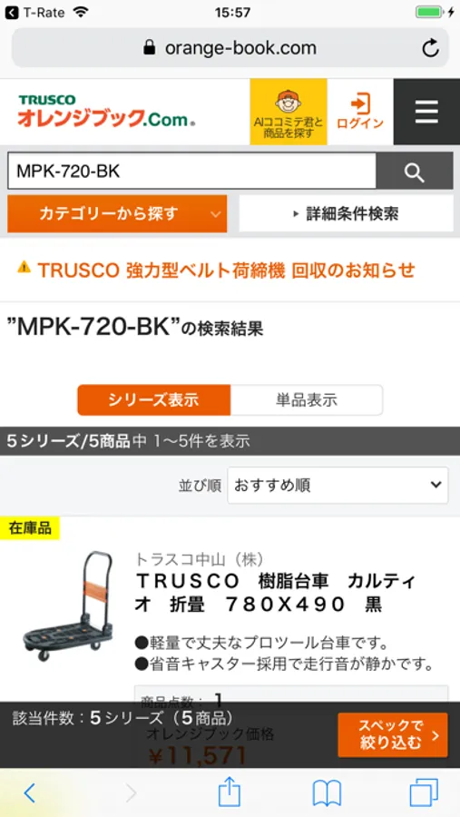 ※当社と直接お取引のある販売店様限定のアプリです。アプリのログインにはトラスコ オレンジブック.Comへの登録が必要です。