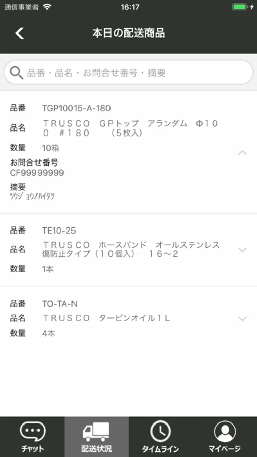 トラスコからの商品の配送状況をアプリでご確認することができます。