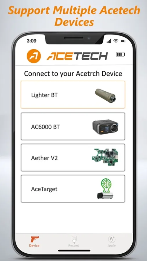 By bluetooth connection, Acetech tracer can be used as chronograph to test airsoft speed. Speed is dectected automatically and tallied in real-time.