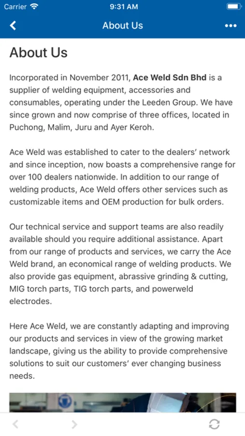 Incorporated in November 2011, Ace Weld Sdn Bhd is a supplier of welding equipment, accessories and consumables, operating under the Leeden Group. We have since grown and now comprise of three offices, located in Puchong, Malim, Juru and Ayer Keroh.