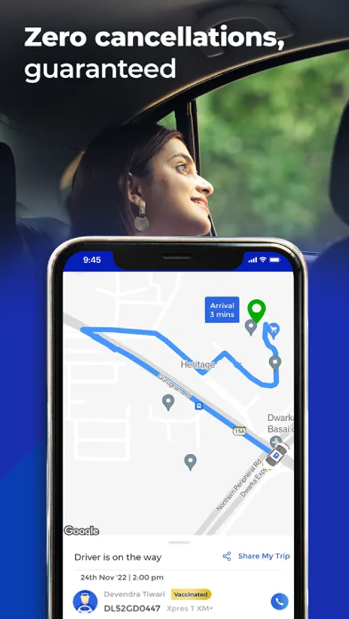 No cancellations: Travel with utmost peace of mind 24X7 because our driver-partners will never cancel your ride.