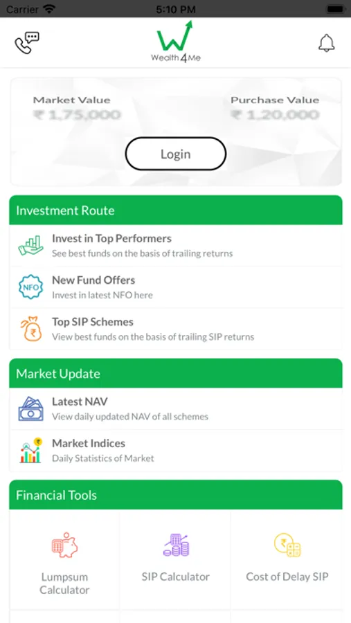 Wealth4me is one-stop shopping for all your Investment needs. You can use this state of the art app to stay on top of your Complete Financial Portfolio with all assets: