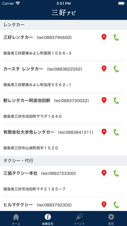 We gathered useful information during your stay in Miyoshi such as taxis, driving agency services, and convenience stores.