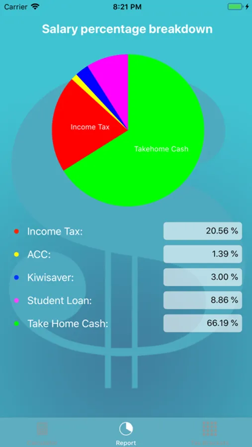 Additionally, the calculator allows you to determine your annual or monthly salary based on the number of working hours per week and your hourly rate. You can also see a breakdown of your salary percentage and tax bracket information, providing a comprehensive view of your financial situation.