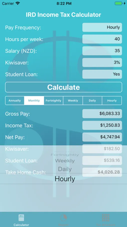 The user-friendly interface lets you calculate your net earnings based on your gross salary, KiwiSaver contributions, and student loan payments. The results can be displayed in various timeframes, including hourly, daily, weekly, fortnightly, monthly, and annual rates.