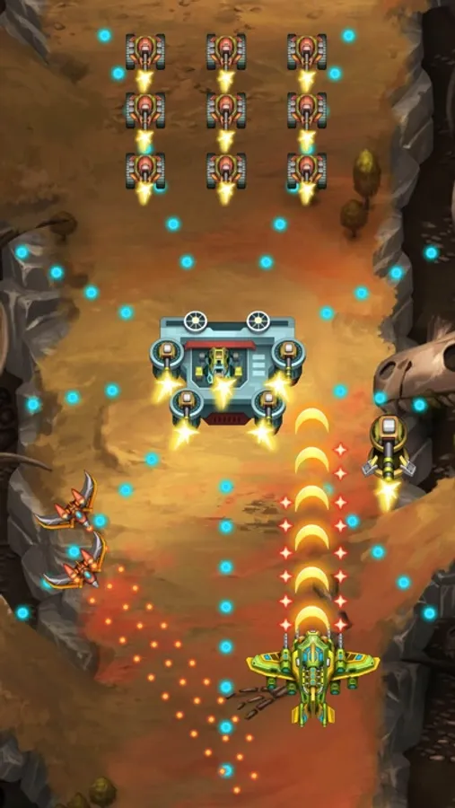 “Solar Squad: Space Attack” will strike you with an intense impression of the classic arcade shoot’em up spirit like Strikers 1942, Tyrian, Galaxiga but with modernized visuals and design. You will immediately come to love with the incinerating flame and bullets, colossal bosses and diverse aircrafts and skillful squad.