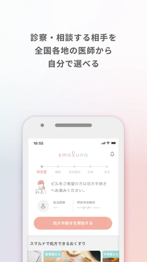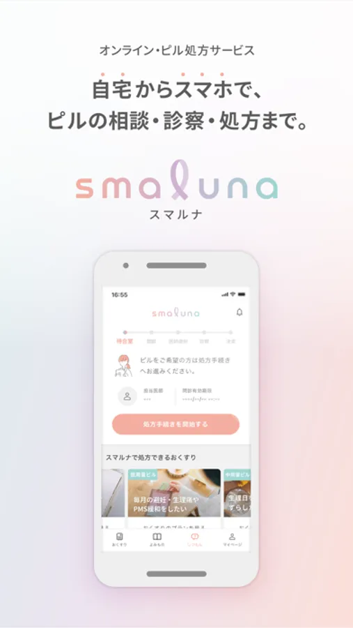 スマルナは、ピルの相談から診察・処方までスマホでできるオンライン・ピル処方サービスです。ご自宅でも職場でも、いつでもどこからでも受診できるので、「近くに婦人科が無い」方や「婦人科での診察に抵抗がある」方、「日々の用事で忙しく通院する時間がない」という方にもおすすめです。
