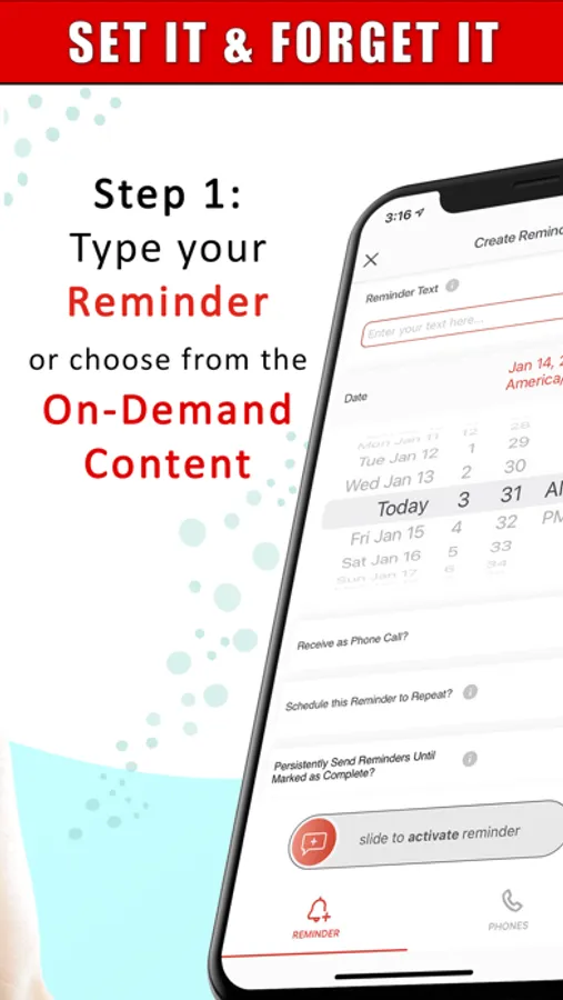 Get rid of ordinary Alarms, Reminders, and Sticky Notes that don't stay on your radar, and switch to Text Message and Phone Call reminders! This innovative concept will make a huge difference in your life, by ensuring that you never forget any of your important tasks, events, dates, and appointments ever again.