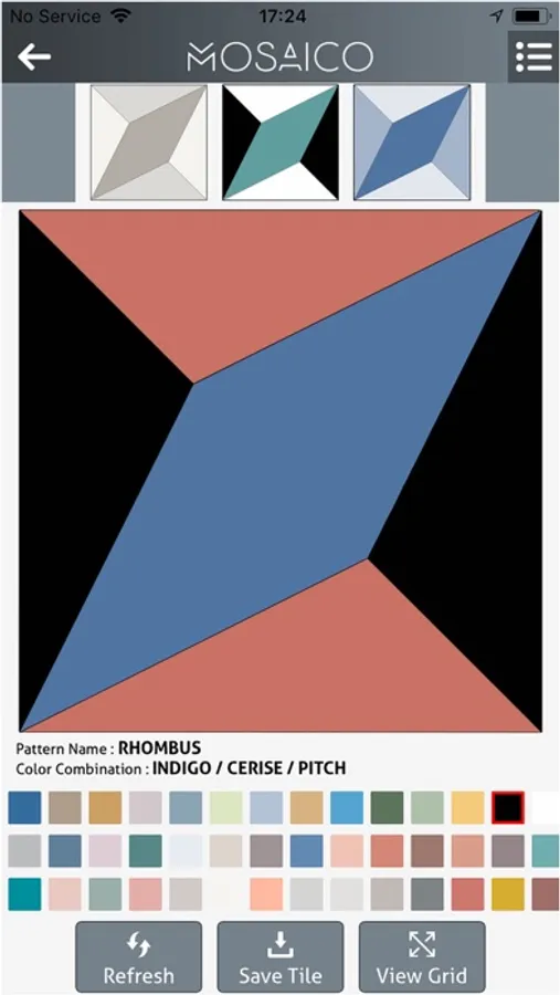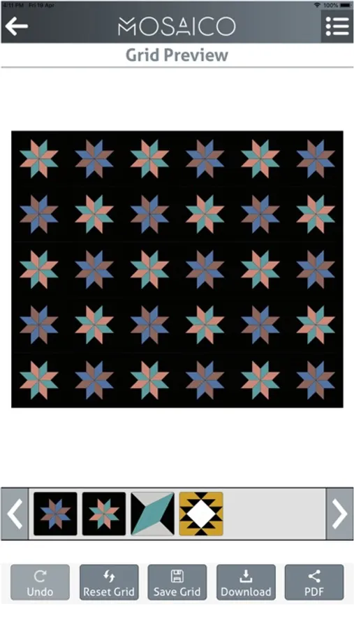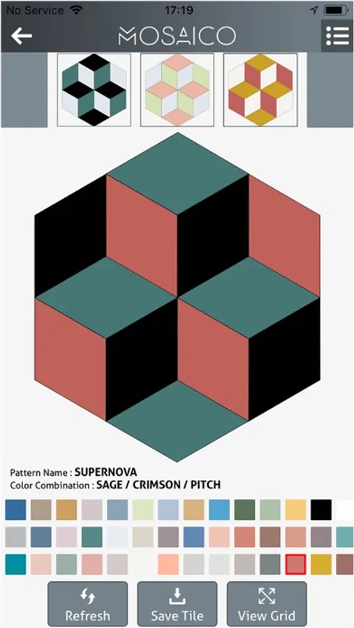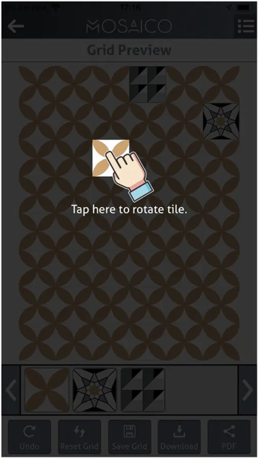 This App is a tool for Mosaico FZC customers to design their own handcrafted cement tiles, by choosing patterns and colors of their liking, and then viewing those tiles as they would appear on a floor or wall. Users can create varying patterns and 3D effects through color choice, or by simply mixing and rotating of patterns. Your imagination is your limit!