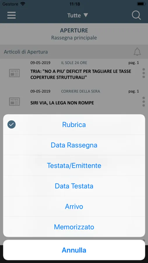- visualizza gli articoli per la versione tablet con la modalità sfoglio