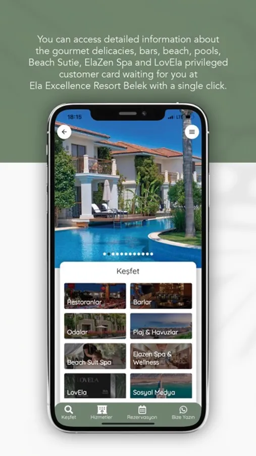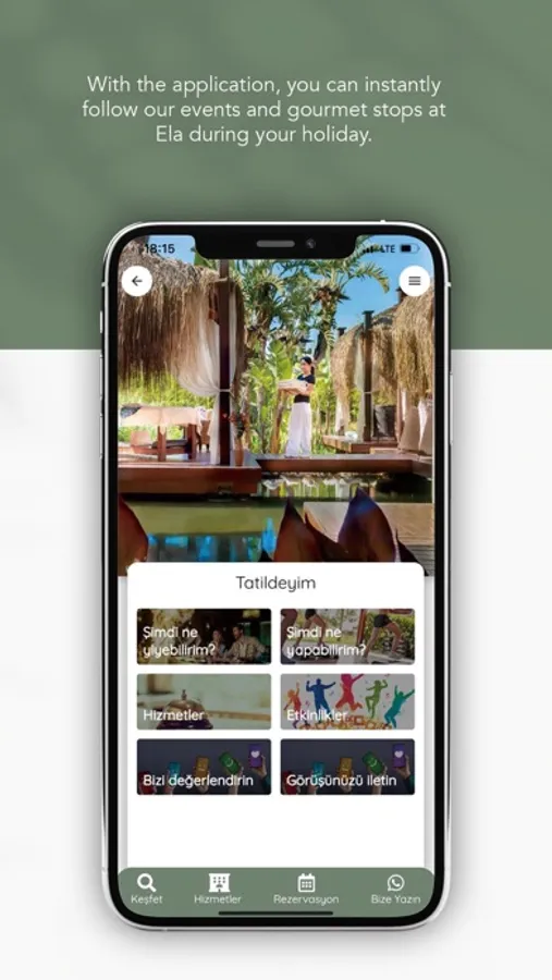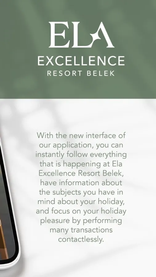 With the new interface of our application, you can instantly follow everything that is happening at Ela Excellence Resort Belek, have information about the subjects you have in mind about your holiday, and focus on your holiday pleasure by performing many transactions contactlessly.