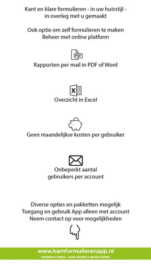 De KAM Formulieren App is de ideale App om uw formulieren digitaal in te vullen en te verzenden.