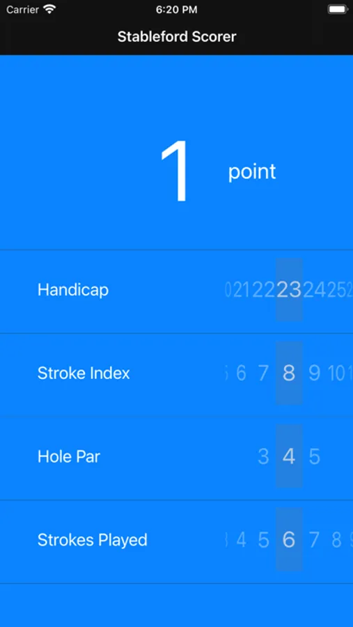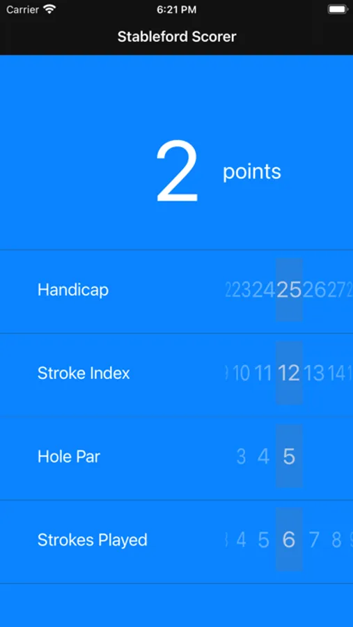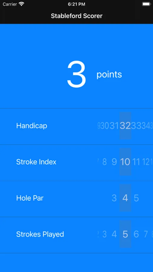 3. Finally, set the Strokes Played slider to the number of strokes played on the hole. Your points Stableford points for that hole are now calculated at the top of the screen.