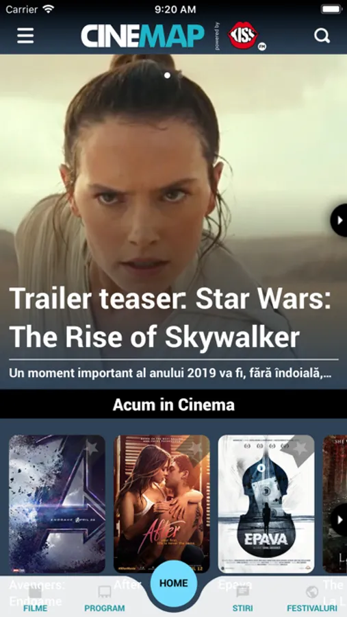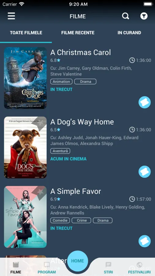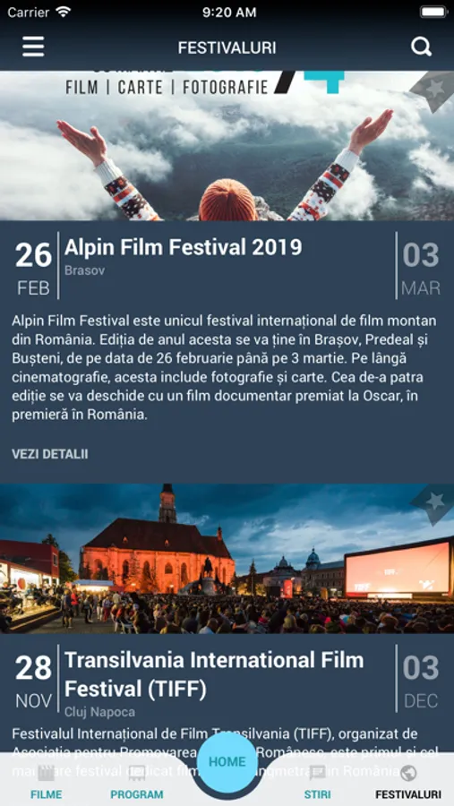 - poți salva filmele favorite, cinematografele favorite, festivalurile favorite