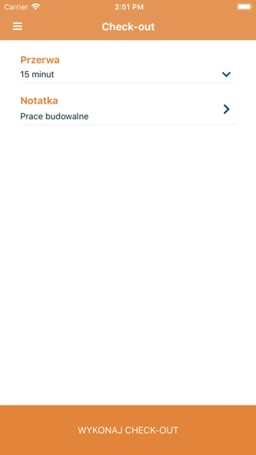 - logowanie check in/out z wykorzystaniem systemu GPS