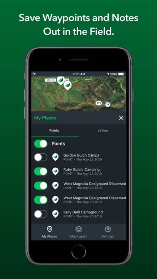 See your GPS location on the map even without Wi-Fi or cell service. While offline, use customized maps, layers, and points to get better insights as you navigate.