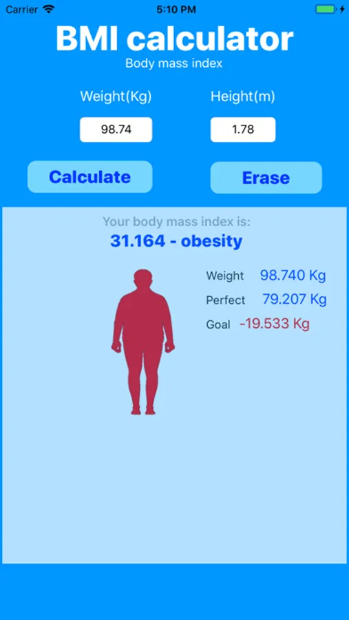 The BMI is the Body Mass Index, it is a measure of the weight of each person, being a relation between the mass of the person and his height. It is an international standard recognized by the World Health Organization, and serves to warn about the risks of obesity or excess thinness, it is worth remembering that this formula is a reference for adults. This app calculates your BMI, also resulting in the difference of your current weight to your ideal weight, giving you a goal of gaining or losing weight to reach your goal and having a healthier life!