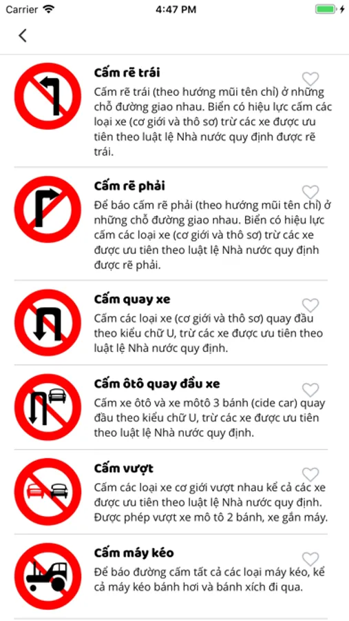 - Tính năng Tra cứu biển giao thông đường bộ Việt Nam, biểm cấm, biển chỉ dẫn, vạch chỉ dẫn, các chỉ dẫn giao thông khi tham gia giao thông trên đường.
